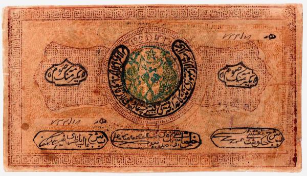 1921, Cambio di simbolo, si passa ai Rubli e la data cristiana si affianca a quella dell'egira. Permangono le mezze lune. Il 10.000 Rubli.